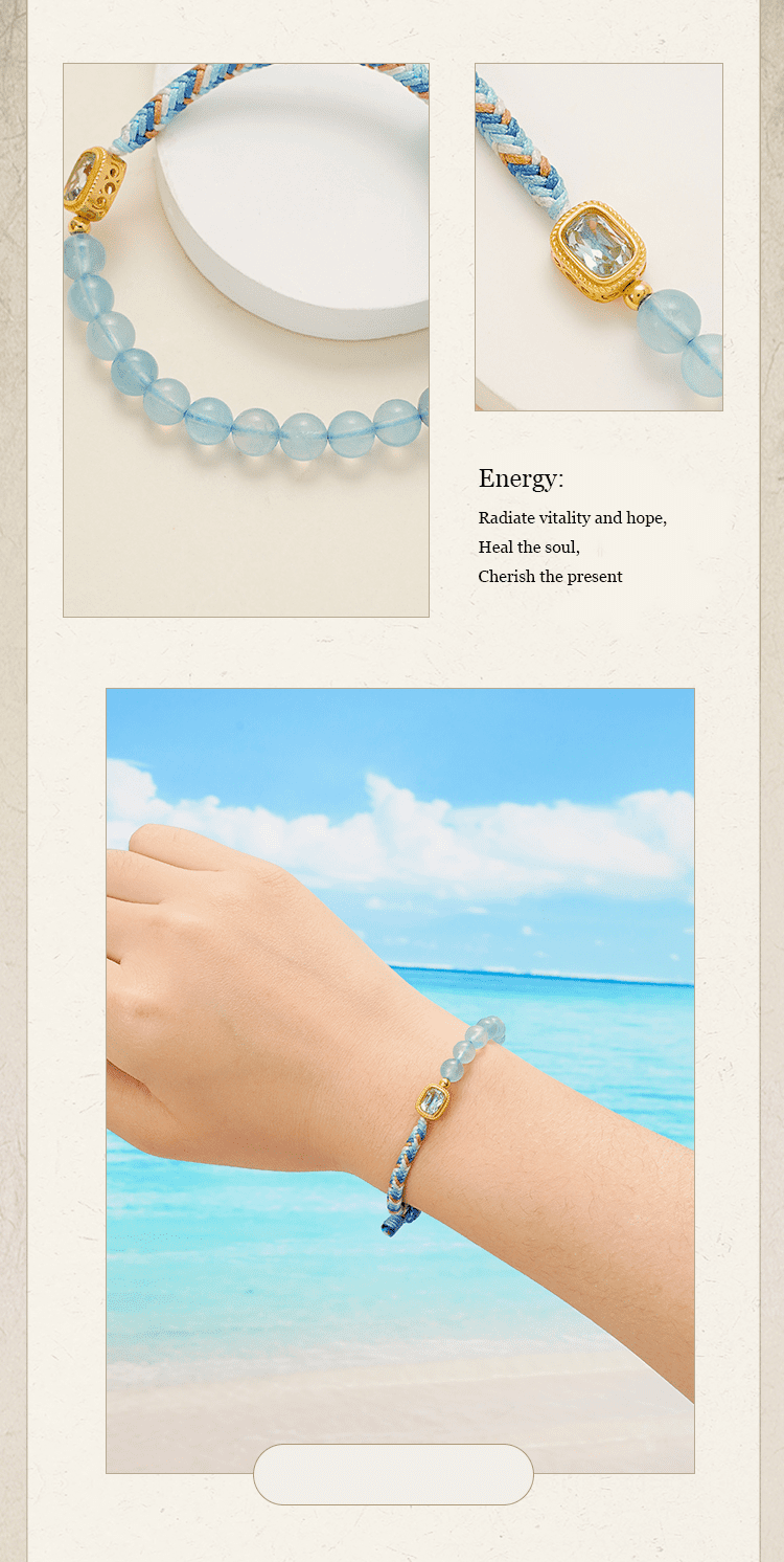 Crafted with luminous topaz set in 925 sterling silver with gold plating, paired with calming aquamarine beads, this piece embodies peace, harmony, courage, and wisdom. Topaz, known as the stone of friendship, radiates warmth and balance, while aquamarine enhances inner strength and confidence.