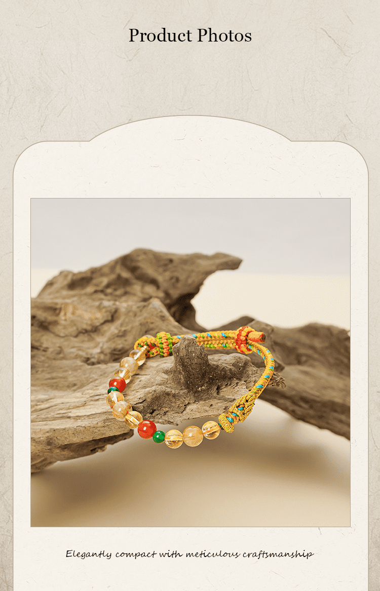 This bracelet is a timeless ode to Chinese sculptural art and spiritual sanctuary, inviting you to step into the heart of Eastern beauty. With every breath, feel the grace and depth of this sacred space, as the combination of red agate, citrine, and rutilated quartz channels energy that attracts wealth and good fortune, protects body and mind, and dispels negative energy.