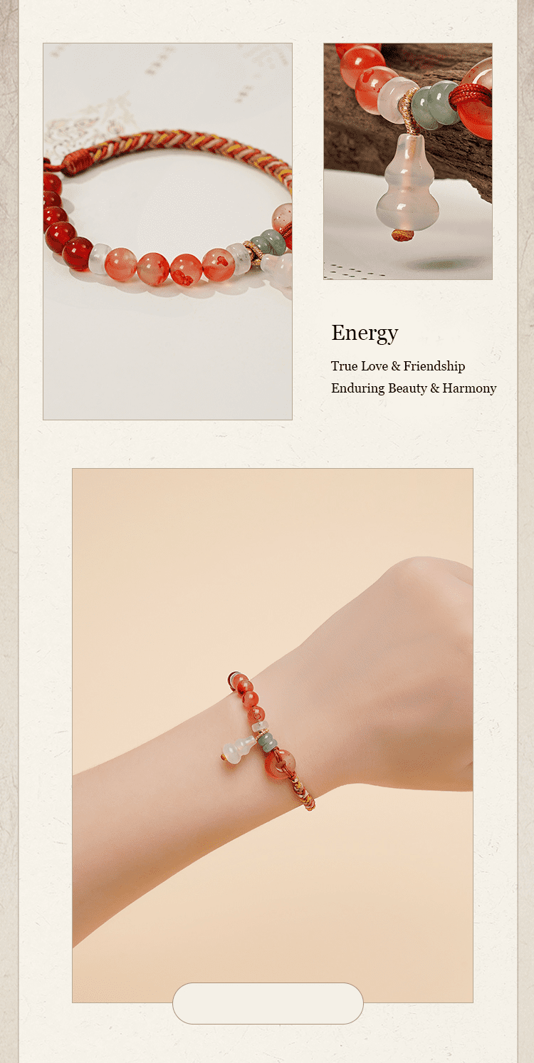 Crafted with Red Agate, Chalcedony, and Jadeite, each bead tells a story of true love, lasting friendship, enduring harmony, and feminine strength. Together, they echo the warm tones of devotion and the timeless elegance of bonds that never fade.
